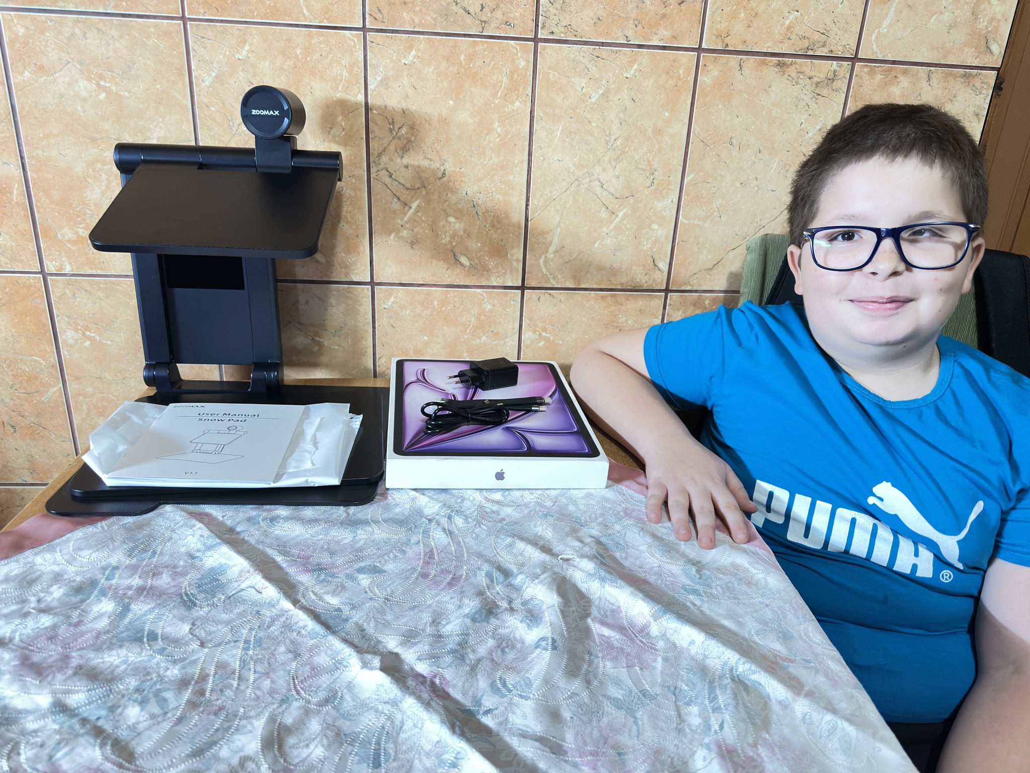 2026.01.12.-én átadhattunk egy látássérült kisdiáknak egy Zoomax Snow Pad digitális nagyítókészüléket és a hozzá tartozó Ipad Air-t. Szabolcs szorgalmas és jó tanuló, biztosak vagyunk, hogy a nagyító segítségére lesz a tanulásban, az olvasásban, a tanórákon való hatékonyabb részvételben.