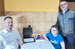 A nagy összegű eszközt a székelyudvarhelyi BNI Energy vállalkozói csoport, a magyarországi Magyar Vaknak Magyar Iskolát Alapítvány, és a Pál Alpár barátunk által szervezett gyergyószentmiklósi vakvacsora támogatásával vehettük meg. Köszönjük a gyergyószentmiklósi RobiKonyha önzetlen támogatását! Szabolcsnak egészséget, kitartást kívánunk, sok közös munkaórát a digitális nagyítóval! Hálásan köszönjük!